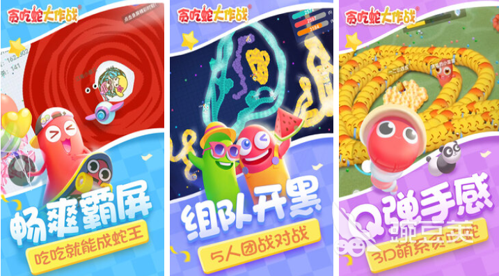 贪吃蛇大作战这里联机运行的吞噬竞技类游戏非常有趣,QQ弹弹的控制手感与3D可爱的贪吃蛇让人印象深刻,越吃越长的设定与传统的贪吃蛇一模一样,精致清新的UI界面与花花绿绿的小蛇带来了视觉盛宴,屏幕的左边可以控制贪吃蛇的前进方向,右手长按屏幕则也可以让贪吃蛇加速冲刺,解压欢乐的吞噬玩法让许多玩家沉浸其中。