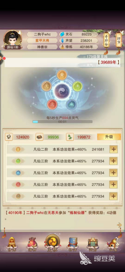 当玩家洞虚之后,想必玩家的巨灵智也升到了一个比较高的级别,这里小编推荐玩家应该把自己的聚灵阵升到139级。聚灵阵的等级高了之后对于玩家的各种属性的秘籍都是一个加成。玩家可以很轻易的将自己的防御之提高到一个非常高的数据上。