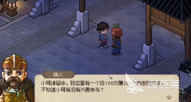 通过商人想要快速的赚到钱,可以采用存档与读档的刷钱方式,投资之后等待12个时辰,可以选择先存档,然后通过读取存档反复在与商人交谈,以此来实现刷钱的效果,在交谈中还有一个选项是我对钱没有兴趣,等待12个时辰后再找到商人,有机会触发游戏中的一个漏洞,可以使用10贯钱来获得高额回报的投资,这个方式也是可以通过存档和读档的方式来回刷的,这样既提高了投资的回报率,也降低了风险。